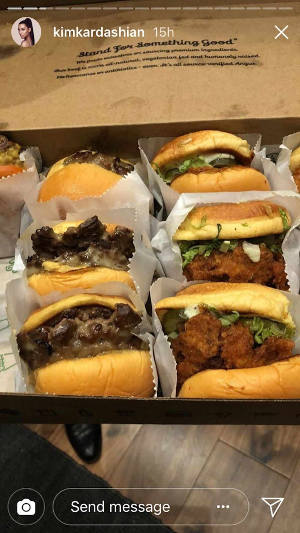 Rather than serving an uber-fancy meal on par with her A-list guests (the likes of which included Kim Kardashian West, Kris Jenner, Jen Atkin, Jesse Tyler Ferguson, and Kanye West), the soon-to-be mommy of two noshed on catered burgers, chicken sandwiches, and of course, shakes, from — get this — legendary fast food joint Shake Shack!