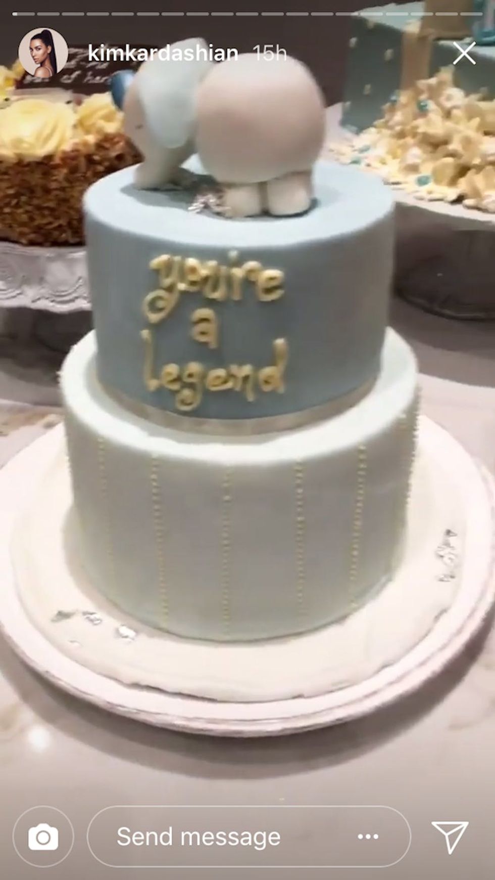 The model was also captured sitting on a kitchen counter and indulging in one of her five cakes (all bearing “Legendary” puns) by none other than Kardashian West herself. “Chrissy ate the entire cake you guys,” the 37-year-old joked.