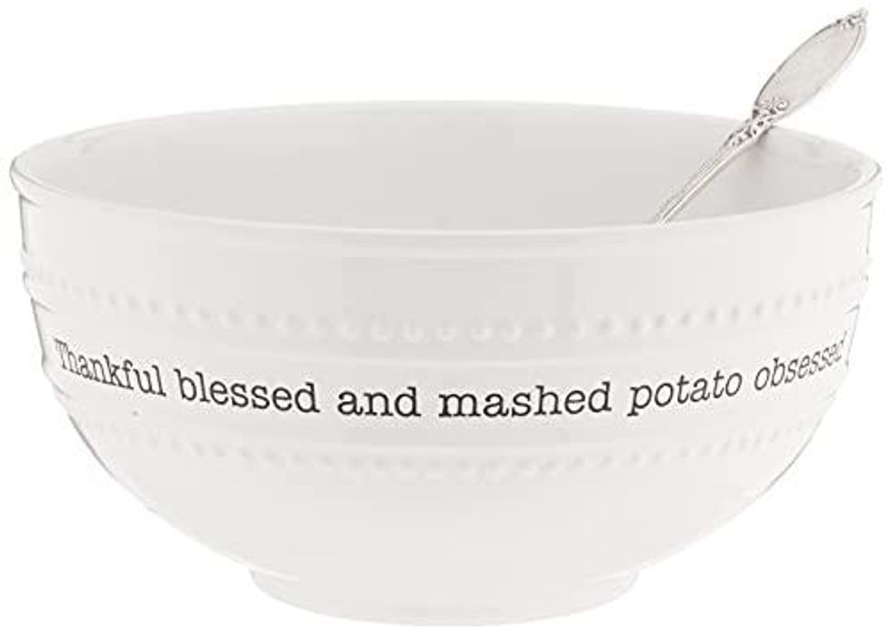 Arguably the best part of Thanksgiving dinner besides the turkey, mashed potatoes are absolutely delicious. Show your love of the tater with this adorable serving bowl that says "Thankful blessed and mashed potato obsessed"! The pretty white design goes with all your existing serveware so it'll fit right in.