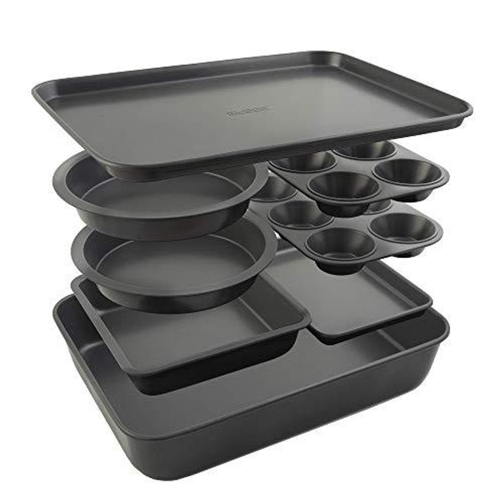 Beautiful bakers, where you at? This 8 piece baking set is going to be your new best friend as it comes with every single baking sheet that you will need to create all of your favorite recipes. Are you a cupcake, muffin or cookie lover? This set has just about every single cooking sheet and pan you may need to create the most delicious and fresh recipes! It's a must-have for everyone's kitchen.