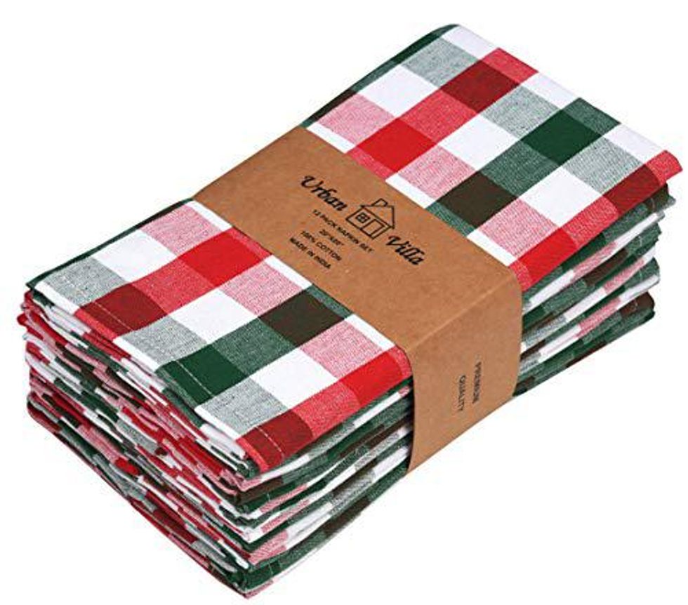 The cheerful plaid pattern in iconic red and green on these oversized Christmas napkins sets a festive mood for your dinner! The super-soft cotton napkins are durable, wrinkle-resistant, and fade-free through many, many washes. You'll get a set of 12 for a great price, so there are enough to go around the holiday table or buffet.