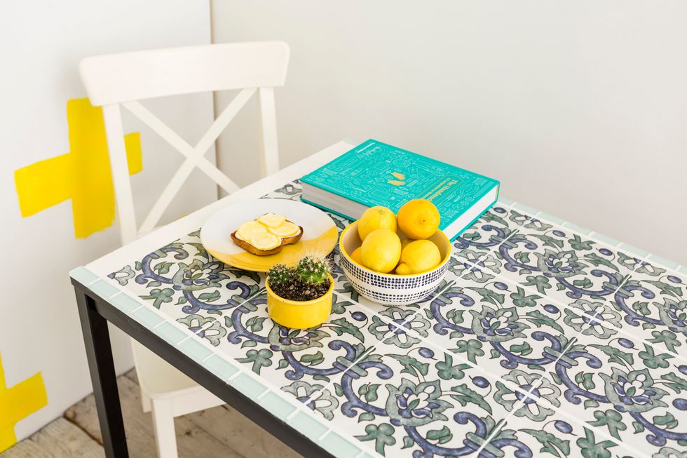 Add a backsplash. Install a peel-and-stick removable tile (like this Mint Shell print) if you are a renter or just don't want to commit long-term. Removable wallpaper like the Lemon Branch print below also makes an amazing visual impact.