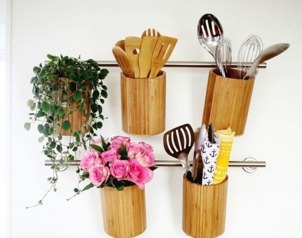 13. Upcycled Utensil Holders: Before you recycle those tin cans and plastic containers, splash a little paint on them to turn them into a pretty place to display your wooden spoons. (via Blah Blah Magazine)
