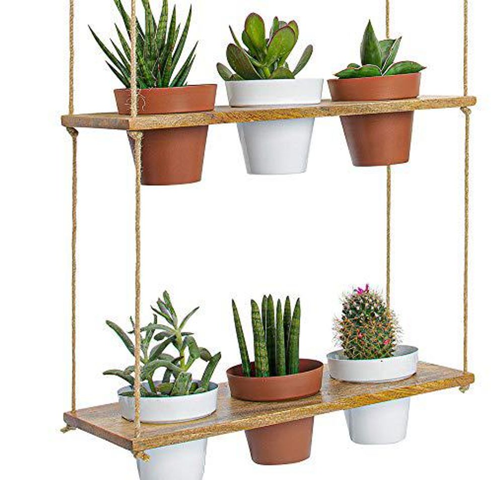 If you are lucky enough to have the space in your kitchen and you want to hone your inner chef, this hanging herb garden is a perfect addition to your décor. This specific herb garden holds nine different pots for herbs or succulents, with accents of rope and wood, and adds both a modern touch and a green thumb to your kitchen.