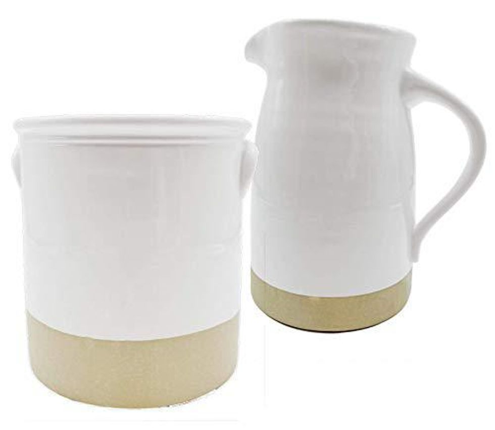 Your new kitchen could use this rustic farmhouse set of ceramic pitcher and utensil holder. Perfect for storing all your kitchen utensils in a pleasant container and will look nice on your countertop next to some beautiful flowers in the pitcher as a vase. A standard utensil holder may go unnoticed, but not when it looks this good. This stunning set will elevate your counter to look like a bed and breakfast.