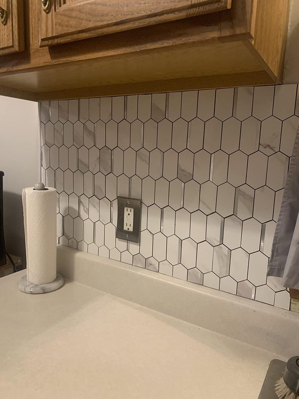 Want to create the look of a custom backsplash to evoke the style of your favorite home reno show (but not allowed to demo your apartment kitchen)? Check out these peel and stick backsplash tiles in a fun hexagon shape, that look like the real thing, and will. level up your kitchen the way they did mine. They are scratch resistant and waterproof, easy to install, and able to transform your walls while also playing it safe in apartment living.