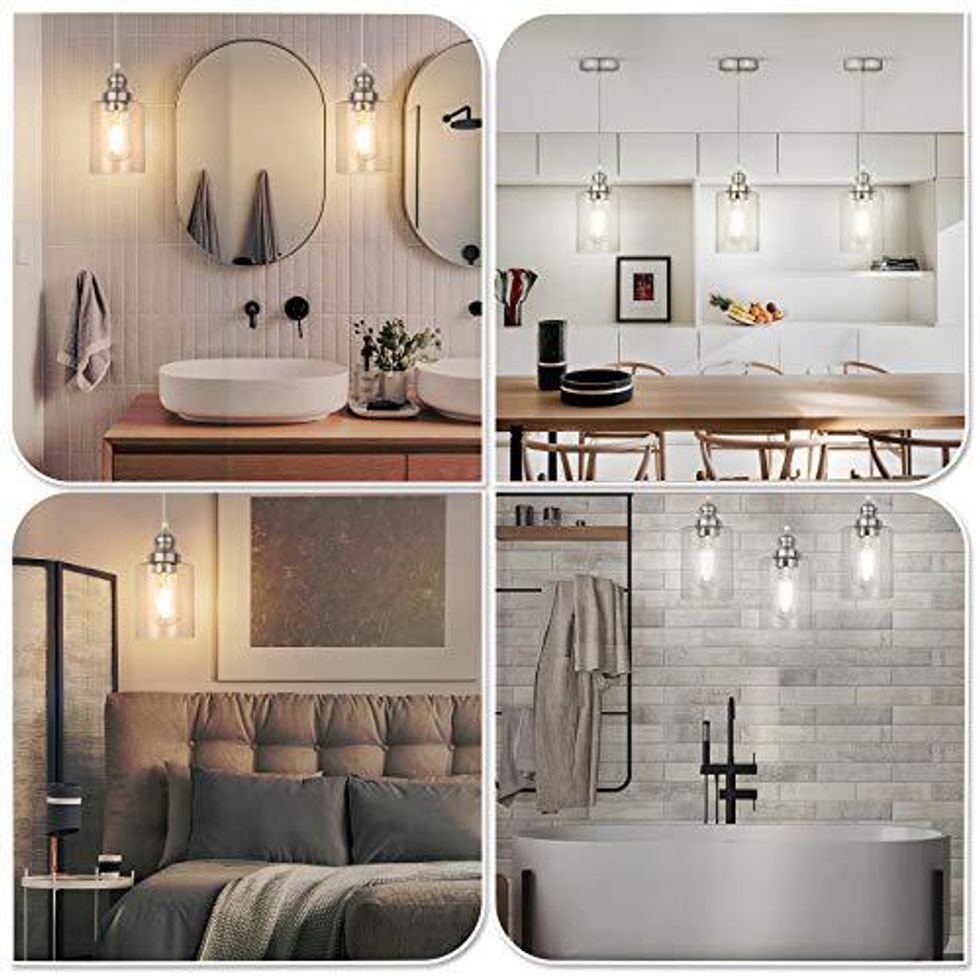 This gorgeous set of three hanging pendant lights bring the vibe of farmhouse chic to your kitchen ceiling. Beautifully illuminate your kitchen island with these delicate pendant lights that will make any meal at your breakfast bar feel like you’re enjoying brunch out at a fancy restaurant. These glass canisters display a filament lightbulb that evokes a retro vibe while providing ample lighting.