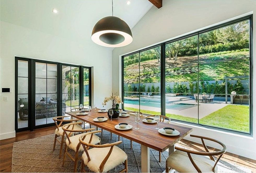 The home has a formal dining room (complete with a refrigerated wine display) and a large, eat-in kitchen that overlooks the pool — the perfect setting for an opulent brunch with the entire Kardashian clan.