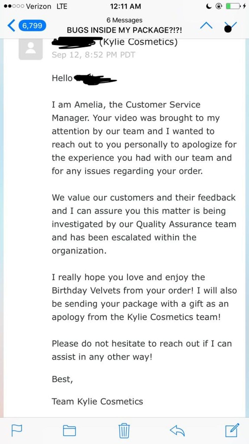 Venditte finally got a response, which she shared in a Reddit post, with the team promising to investigate the situation with Quality Assurance and send Venditte a gift with her replacement order as an apology.