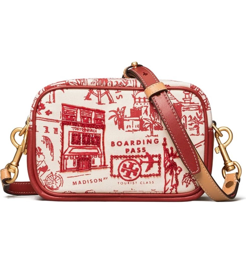 For when you're feeling seasonal wanderlust there's Tory Burch Mini Perry Printed Canvas Crossbody Bag at Nordstrom, which has up to 60% markdowns.