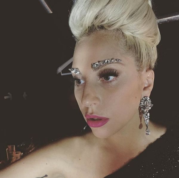 If you don’t want quite as much shimmer on your lid as the green and purple look, move that sparkle up and onto your brows. Lady Gaga rocked blinged brows multiple times this weekend, but this isn’t the first time she has proven to be a fan of the style. At a recent charity concert, Gaga also sported crystallized brows.