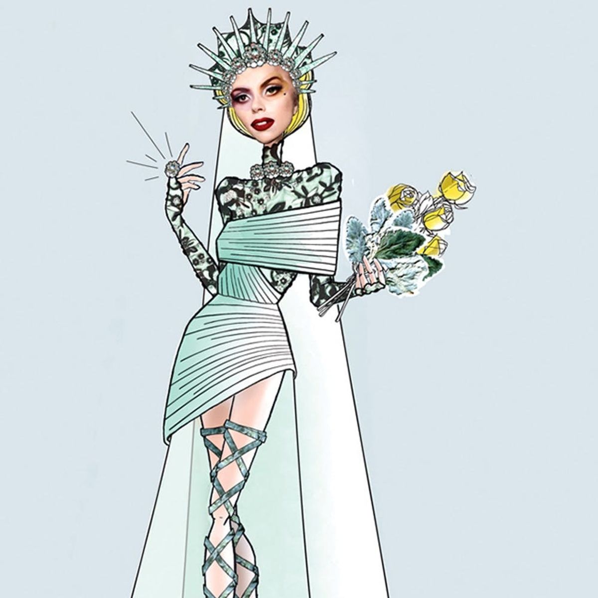 If there’s one thing we know to be true about Lady Gaga it’s that she’s not afraid to go bold in the fashion department. From that infamous meat dress to her Met Gala ensemble, her outfits are about as unpredictable as a Game of Thrones episode. So naturally, after she announced she was engaged (and after we got over the size of her massive ring) we immediately began to envision what she might wear on her wedding day. A gown with a train as long as the aisle? Maybe. A wig that also acts as a veil? We can picture it. But now thanks to WWD we no longer have to close our eyes to imagine the wild outfit Gaga will say “I do” in. The publication has teamed up with 34 designers to create sketches of what they think Gaga will sport on her big day. They envisioned everything from a veil made entirely of flowers to a sparkling, minimal gown. Scroll on down to prepare yourself for what’s sure to be the bridal ensemble of the decade.