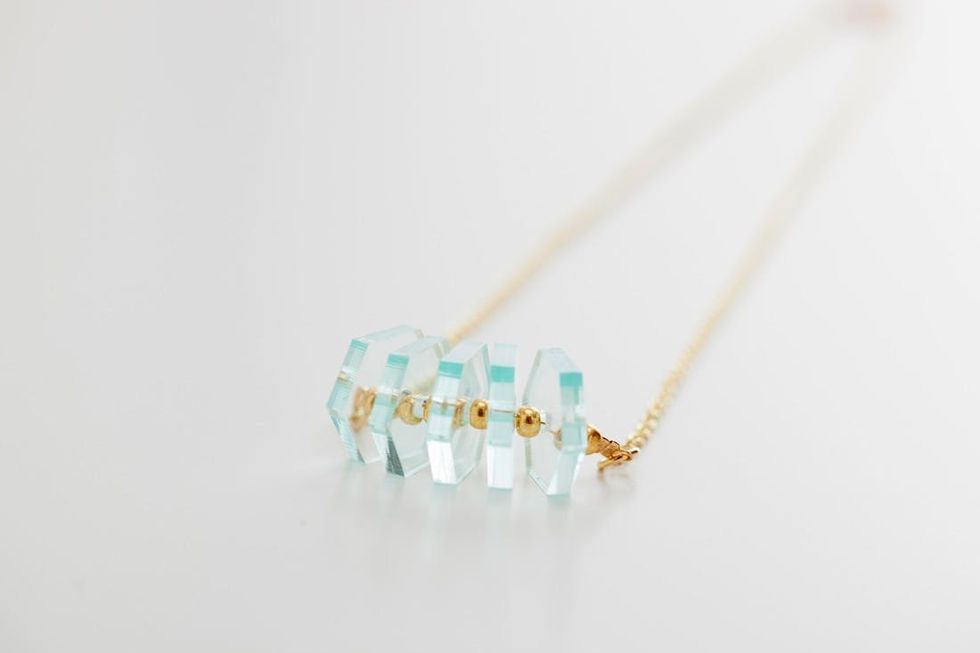 One more to go! Repeat the same process for the second necklace, using the remaining 5 tiles, beads, chain, and findings, and you’ve got yourself a set!