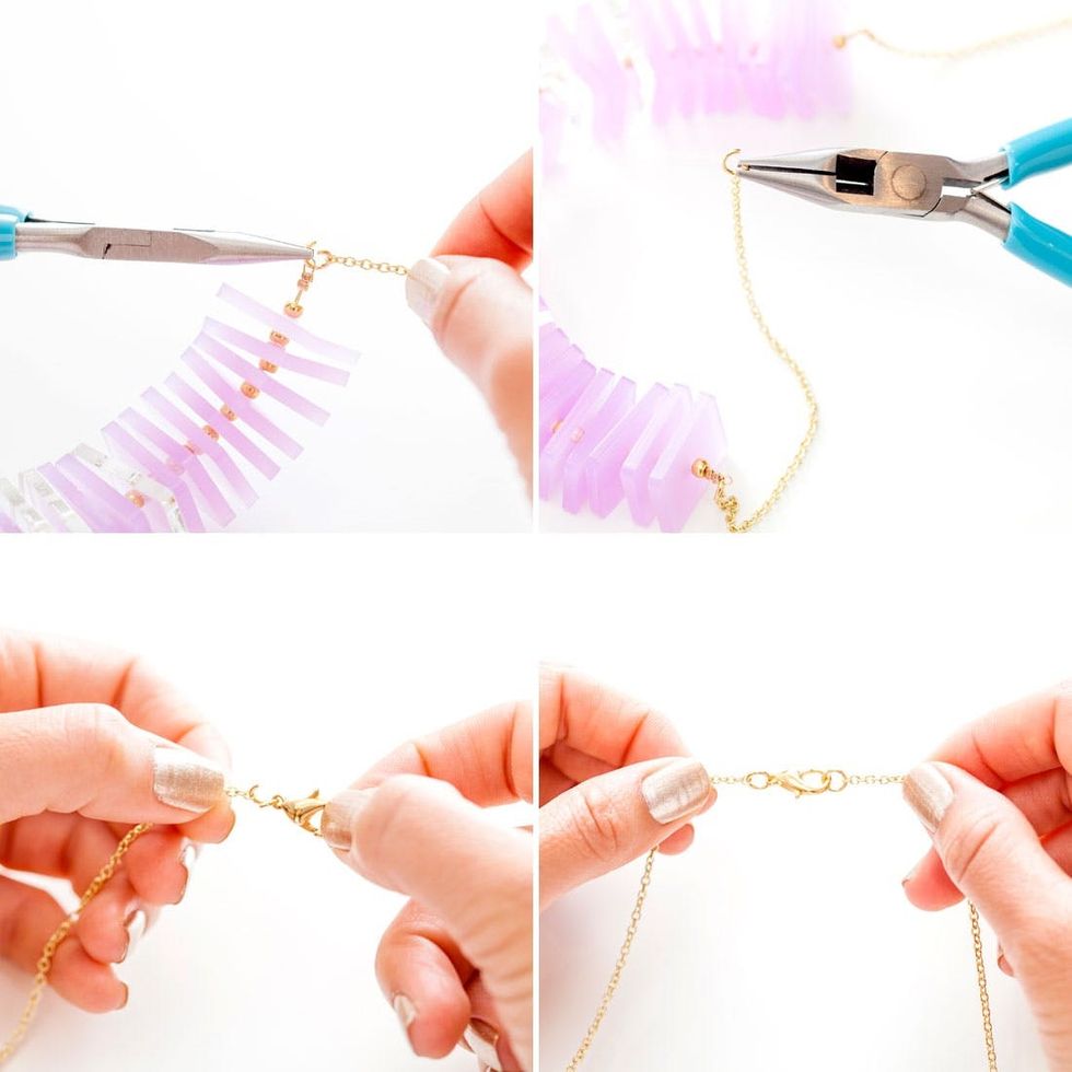 Keep on stringin’ until you’ve used up all your acrylic tiles, or just until you’re happy with the length.