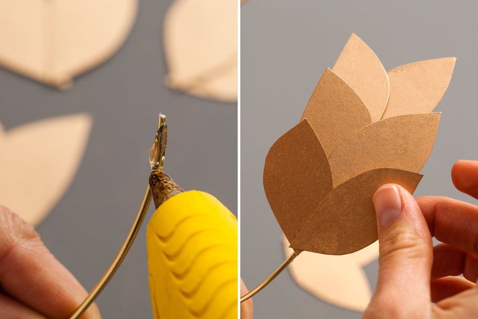 5. Glue leaf sets to the wire with the leaves facing forward.