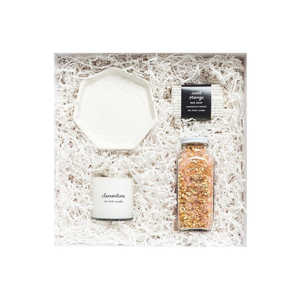 Experiential Gifts: Sometimes, experiences speak more to your favorite person than things. In this case, Conrad recommends something that's more tailored to what they love doing — rather than unwrapping. "Often people who help care for our children could use a little adult time. A gift certificate to a nice restaurant or spa is a great gift," she says. We recommend the Little Market Orange Gift Box ($90) to treat your babysitter, teachers, or friends to a calming night in.