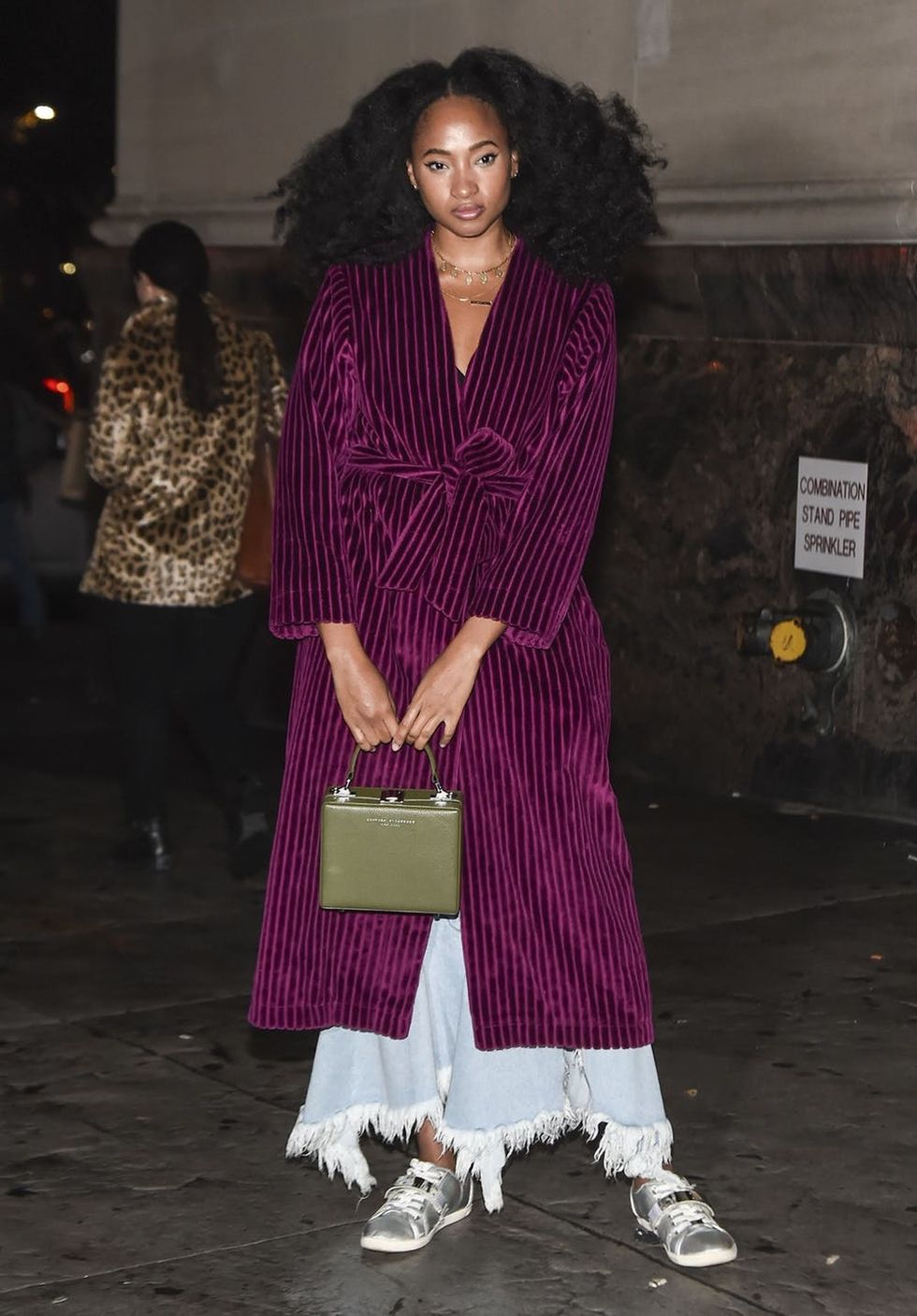 2. Make a coat statement. Finding a fun, patterned overcoat can elevate your look — fast. Aside from being really damn cozy, a head-turning style can be thrown on over workout pants and ripped jeans for a more polished transformation. Complete the outfit with a tiny handbag and a gold necklace or two. (Photo via Daniel Zuchnik/Getty Images)