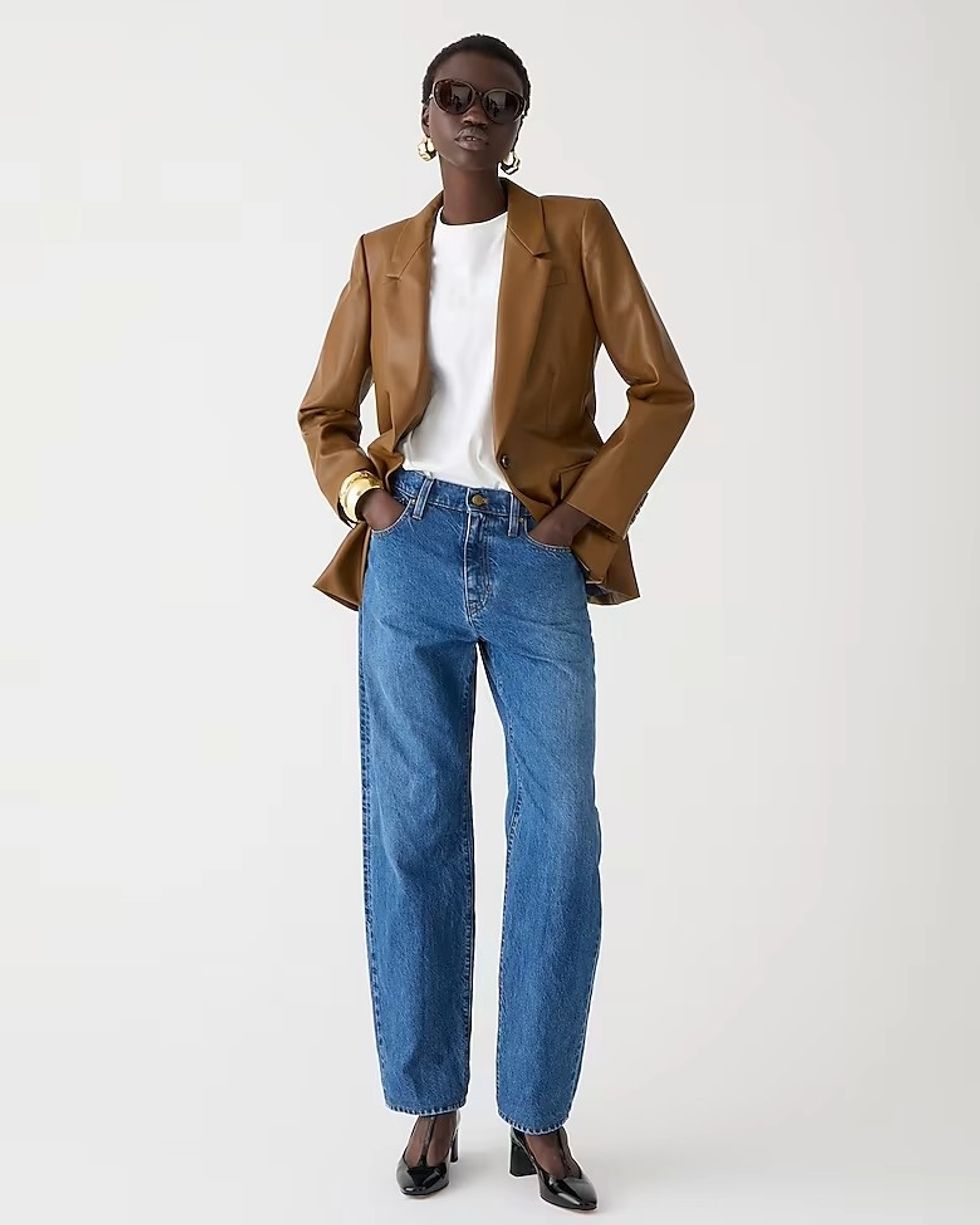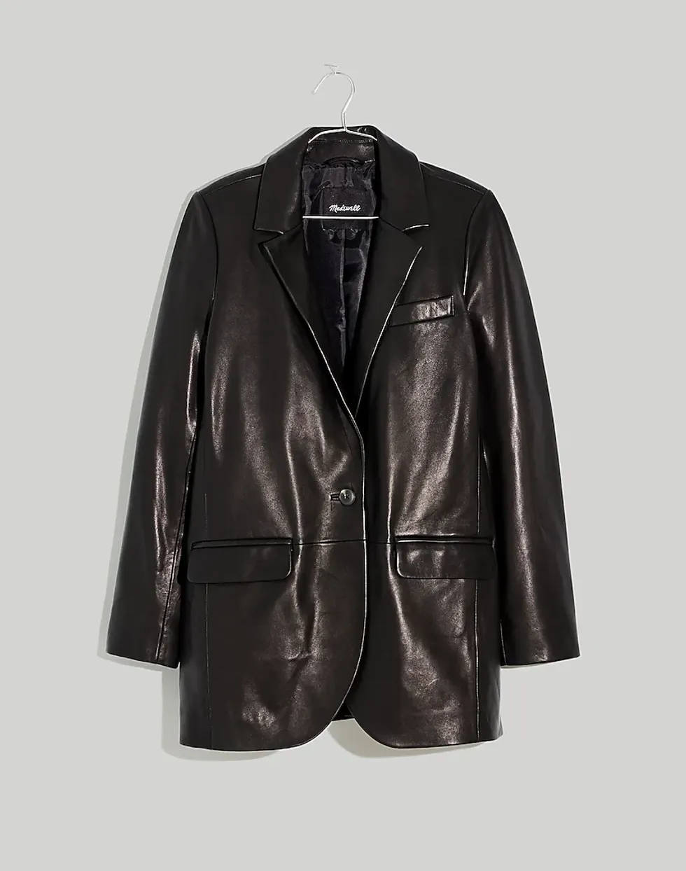 The Larsen Blazer is a Madewell classic, and we love this season's leather version! Pair it with jeans and a tee to dress up your casual 'fits this season. While we love Taylor's fitted style, we suggest buying one size up for an effortlessly oversized fit.