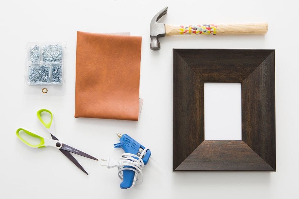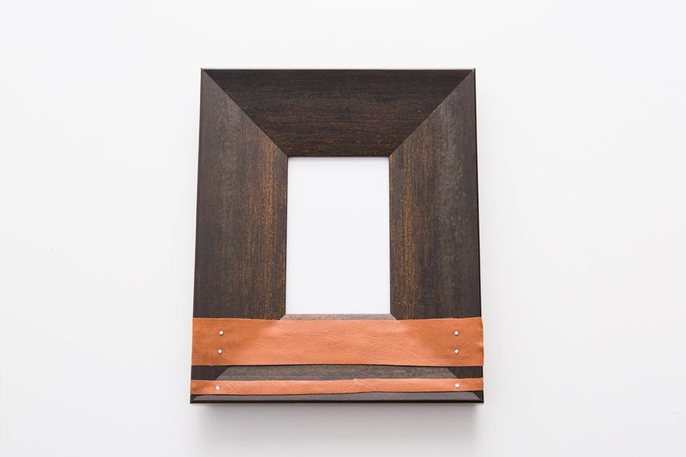 Cut leather to fit your frame. Our frame has a lot of space so we chose to do two stripes with varying thickness. You can cut shapes or even your dad’s initials, too!