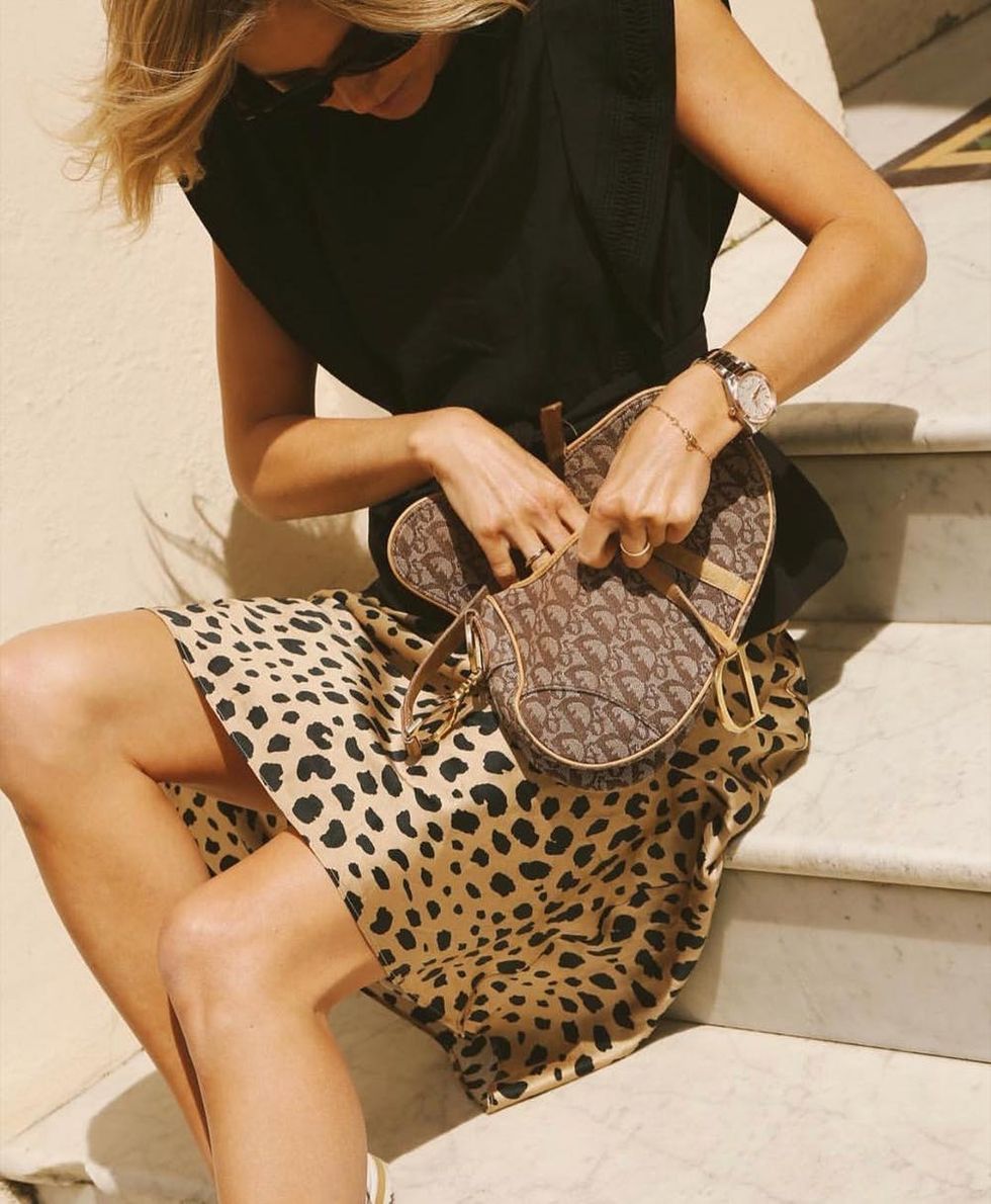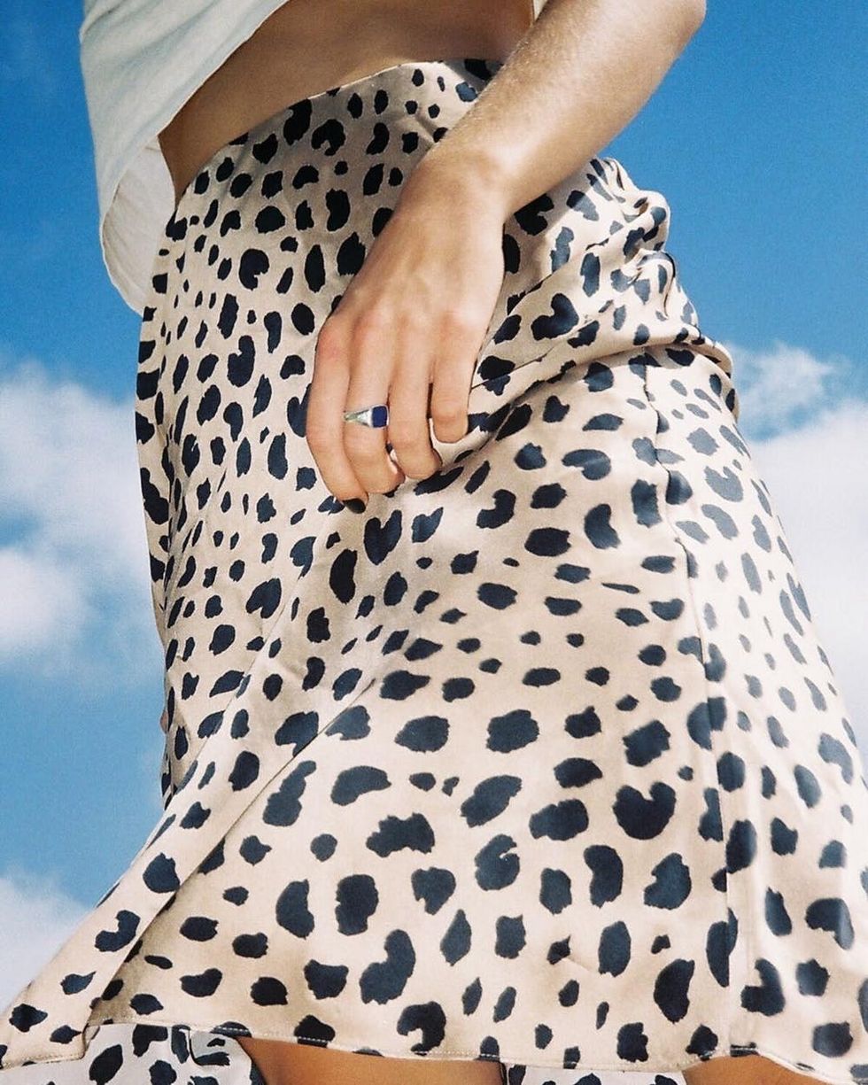 The leopard-printed satin skirt goes with everything for a decidedly cool yet nostalgic effect, like something Cameron Diaz would’ve worn back in the ’90s. Seriously, you can pair it with a white tee and sneakers, a cropped sweater, or something a little more formal, and it just works.