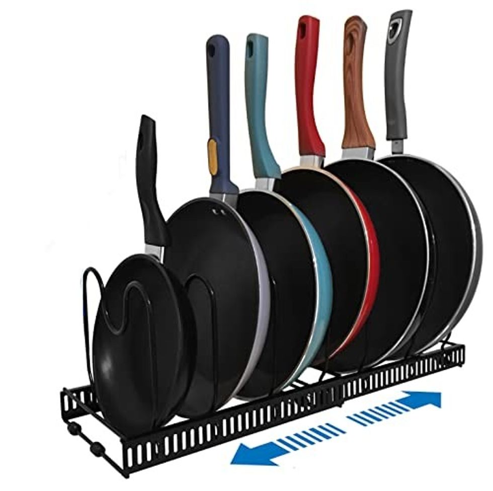 You know you hate digging through all of the pans to get to the one you want. Get this pan organizer rack, so you can slide each one out without disturbing any others. Amazing.