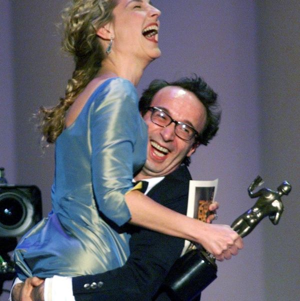 Elated by his win — which saw his role earn the award over stunning performances by acting giants like Tom Hanks (for Saving Private Ryan), Ian McKellen (for Gods and Monsters), and Edward Norton (for American History X) — Benigni ran up and down the prestigious theater’s aisle, shaking hands and beaming out a joyful smile. He then climbed over chairs AND CELEBS to take the stage where it became even more clear how much the Oscar meant to him.