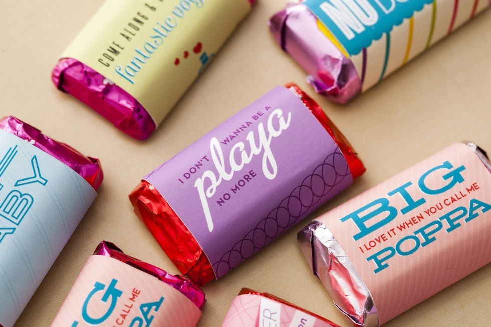 A true wrapper's delight.Ready to call yourself a true wrap star? If you love to cue up old school '90s hip hop tracks any chance you get, these kickin' candy covers are just what the doctor (Dre, obvs) ordered. Vanilla Ice, B.I.G., Poison, and Blackstreet are all represented in this chart-topping collection. They wrap perfectly around fun-size chocolates. We think it would be fun to do a candy countdown with a fresh beat and treat for the week leading up to Valentine's Day.