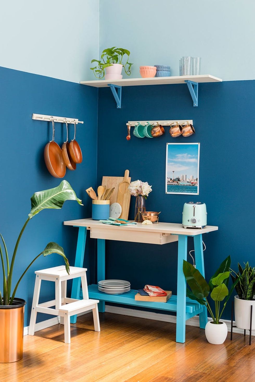 It wouldn’t be a true B+C article if we didn’t create art from our color inspo! With the help of ColorSnap Visualizer app, we used one of the color palettes above to transform a kitchenette. Scroll on to see how we did it!