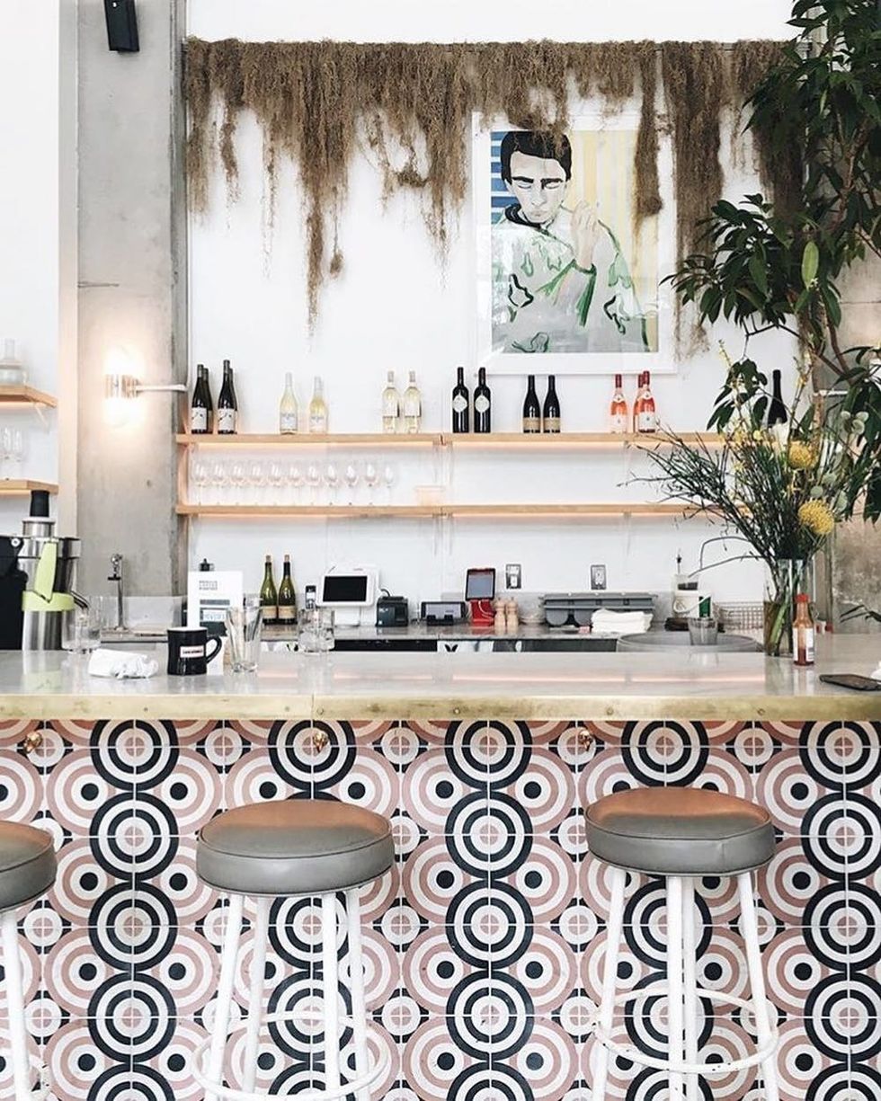 Jane, San Francisco, CA: The caffeine and delicious pastries are aplenty in this cafe in Pacific Heights. The black and white wallpaper, graffiti-decorated mirrors, and giant mounted bull head add stylish ambiance, while the chevron-patterned table tops are ideal backgrounds for snapping food 'grams. (Photo via Brittany Griffin)