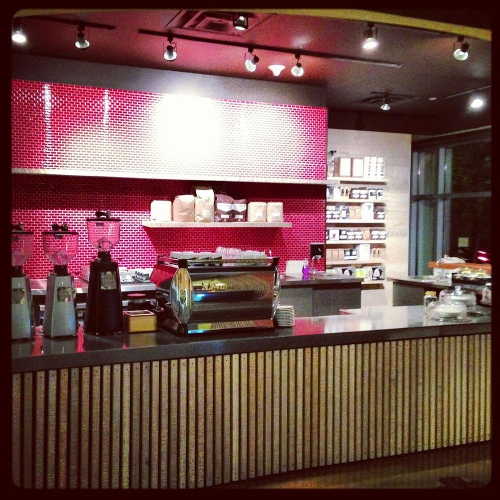 Houndstooth, Austin, TX: Houndstooth's well-trained baristas make craft beverages in front of this fun coffee cherry-colored blacksplash. (Photo via Houndstooth)