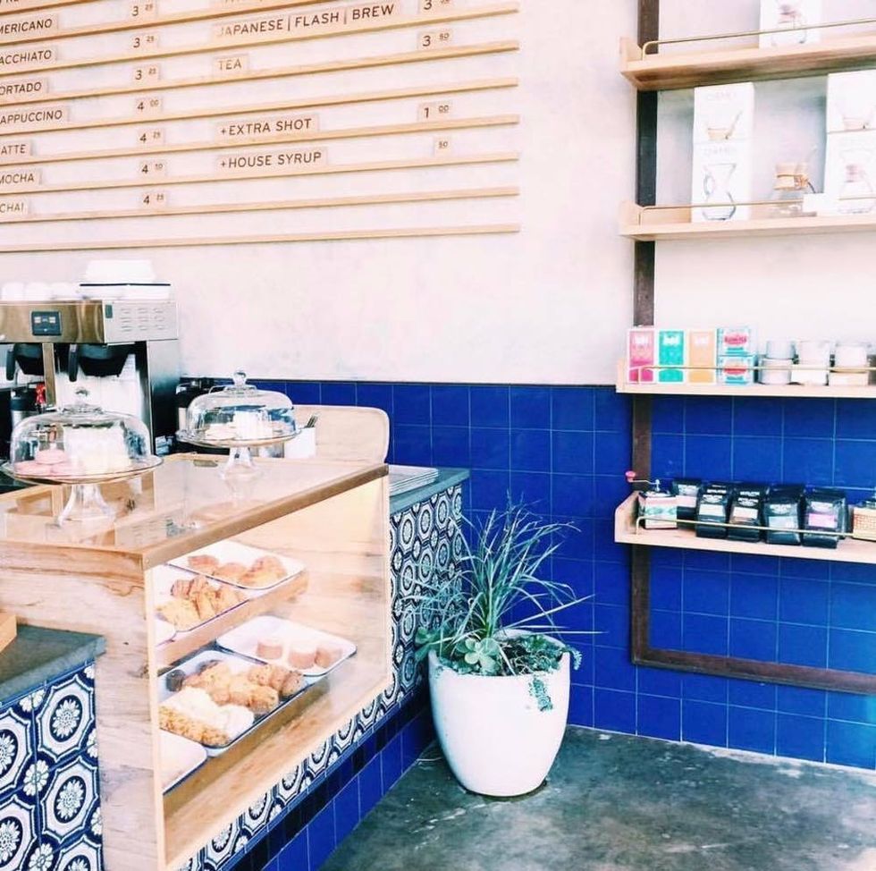 Intelligentsia, Los Angeles, CA: If you have this thing with floors, head to Intelligentsia in hipster Silverlake, where you can grab a shoefie on the Moroccan-patterned blue tiles while waiting in line for your coffee. (Photo via Intelligentsia Silver Lake)