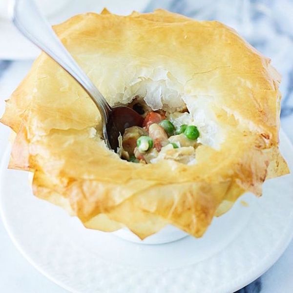This quintessential comfort meal is lightened up with a phyllo dough crust and loaded with fresh veggies. Skip the melted butter on the crust and use coconut oil instead to get the same golden brown color while making this one meal your resolution will approve of. (via Cooking for Keeps)