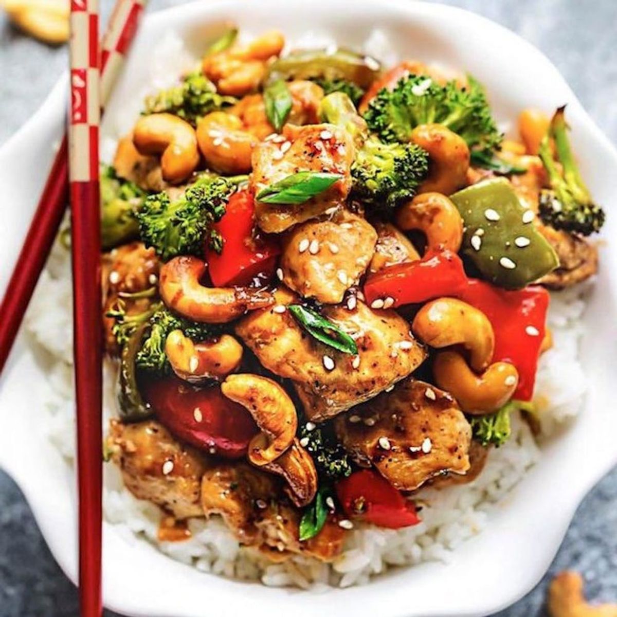 6. Toss it all in oil, and season with salt and pepper. Your main ingredients should get coated with some kind of oil or fat to prevent sticking and encourage all of that yummy caramelization that happens in the oven. Or, whisk together a simple sauce, like the soy-sauce-based version in this Cashew Chicken. In addition to salt and pepper, you can also add dried or fresh herbs. Choose woodsy ones like thyme, oregano, and sage, which stand up well in the oven. (via The Recipe Critic)