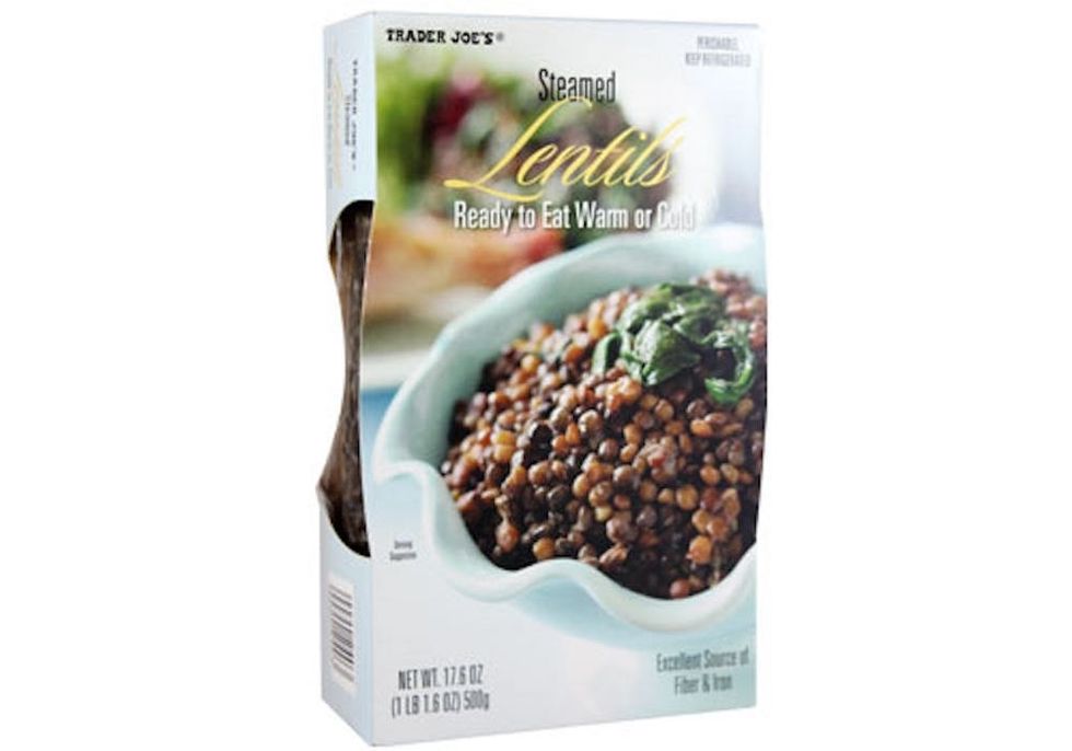 3. Mediterranean Lentil Salad: This one’s as easy as getting out your salad bowl. Pick up a bag of pre-washed spinach and top with TJ’s Fully Cooked Lentils, Pitted Kalamata Olives, and Crumbled Feta Cheese. If you want a little extra protein, we recommend adding a can of Albacore Tuna in Olive Oil.