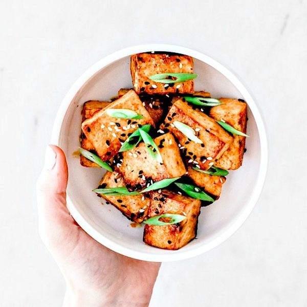 Marinating the tofu in different sauce mixtures is the ultimate way to bring some flavor action to your protein. Simply add your marinade to a sealable bag or bowl with prepped chopped or torn tofu and let it sit for as long as overnight. From there, you can pan-fry it using the guide above.