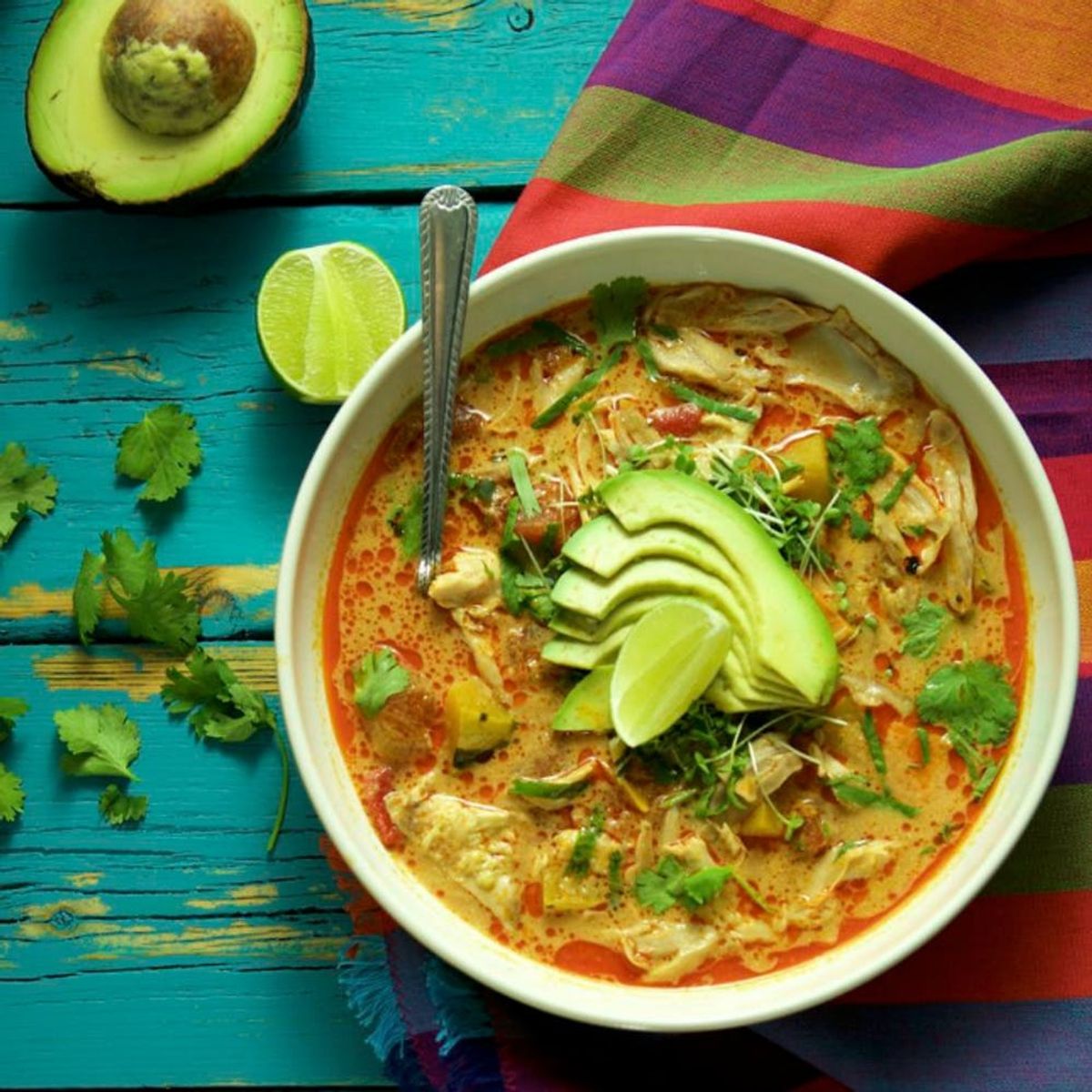 Sopa de Pollo: Coconut milk isn’t a traditional ingredient in sopa de pollo, but it adds a creamy comfort that satisfies your craving for something rich and filling. Garnish with chopped cilantro, fresh avocado, and lime wedges, and it’s like a pumped-up version of everyone’s favorite tortilla soup, minus the tortillas. (via Naked Cuisine)