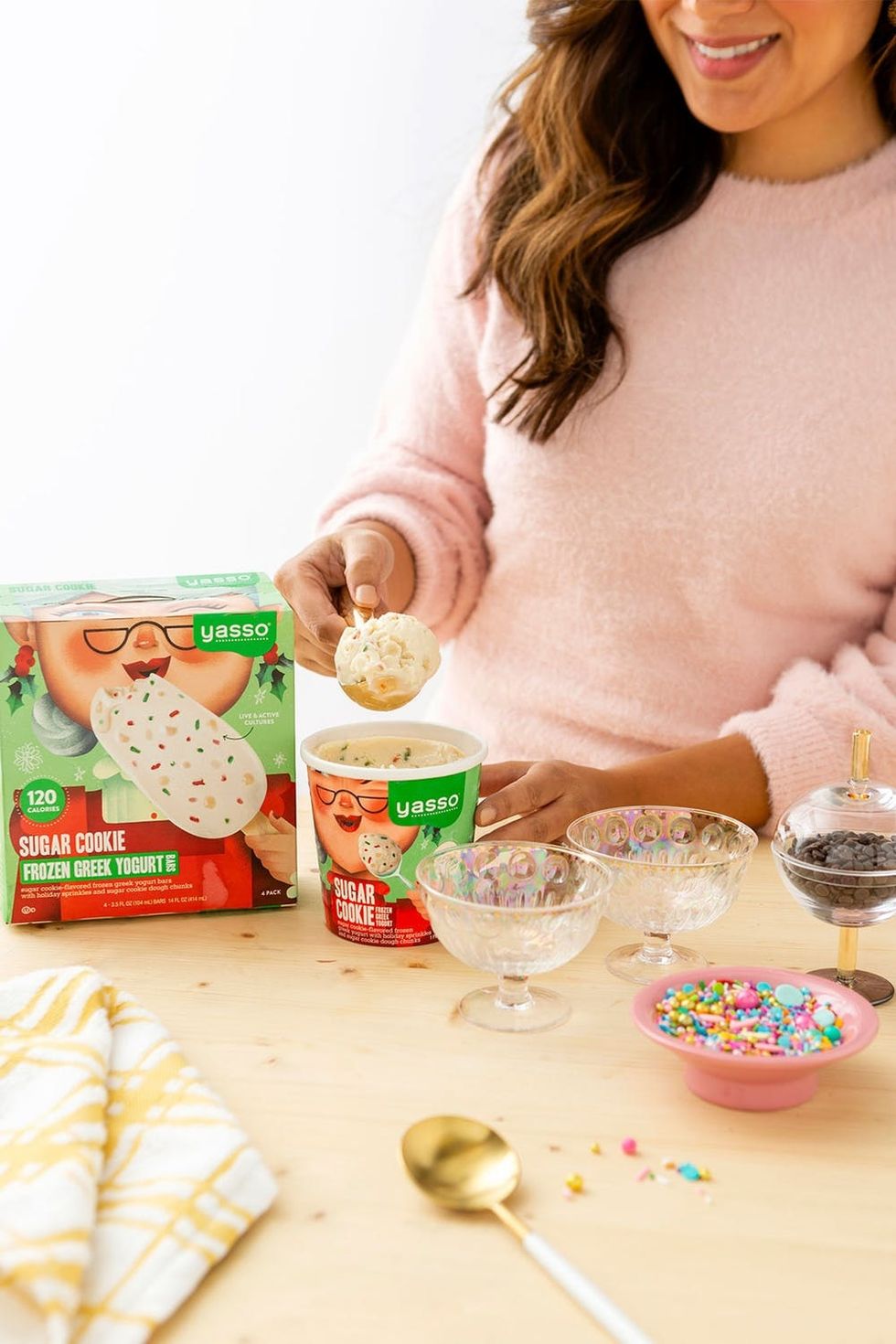 7. Put a new spin on the same old holiday cookies. Ready to indulge a little?Time to break out one of Yasso’s newest holiday flavors: Sugar Cookie. Your guests will love the nutritious twist on the classic holiday cookie and the opportunity to customize their sundaes. We’re partial to a setup that includes plenty of sprinkles and marshmallows. The kids will get a kick out of decorating their dessert, and you’ll get the satisfaction of knowing you’ve discreetly packed a bit more protein into their meal. PSST: You can also grab the bar version for a quick treat on the go!