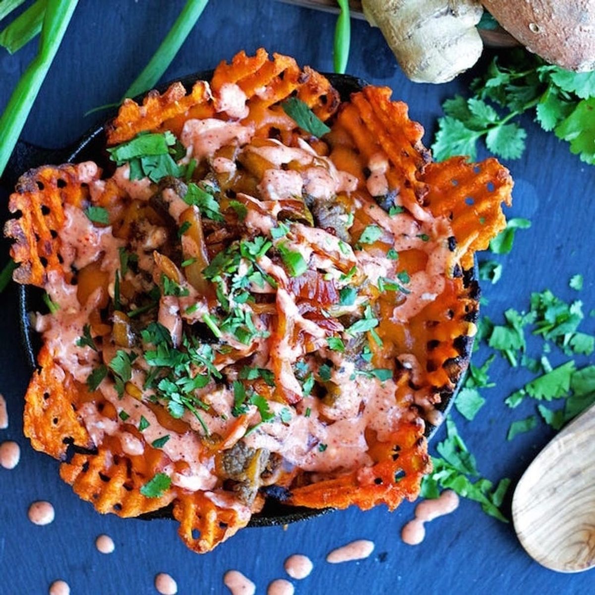If you’ve never indulged in kimchi fries, you don’t know what you’re missing. The fries are buttery, the sauce is creamy and the fermented veggies add tang and crunch. Prepare for culinary sensory overload. (via Kelley and Cricket)