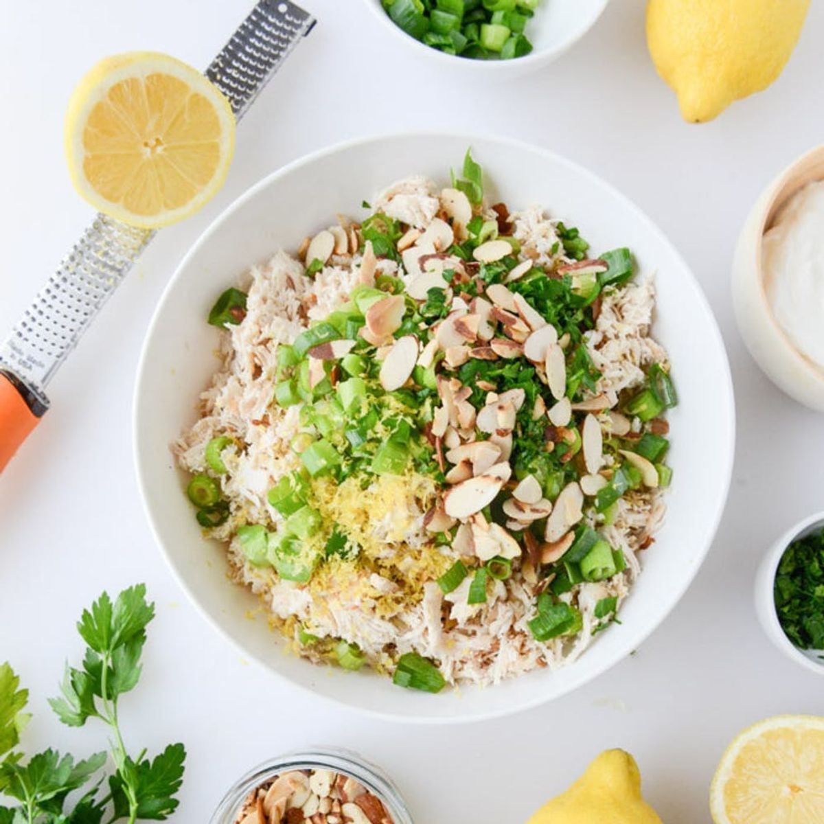 2. Lemon Almond Roast Chicken Salad: Shredded chicken salads *sound* healthy enough, but many of them are loaded with mayonnaise and even cheese. Not this salad. It’s packed with healthy proteins and fats, like sliced almonds, shredded chicken and Greek yogurt. (via How Sweet It Is)