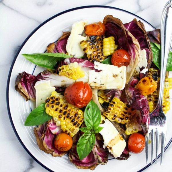 Grilled Radicchio, Corn, and Roasted Tomato Salad