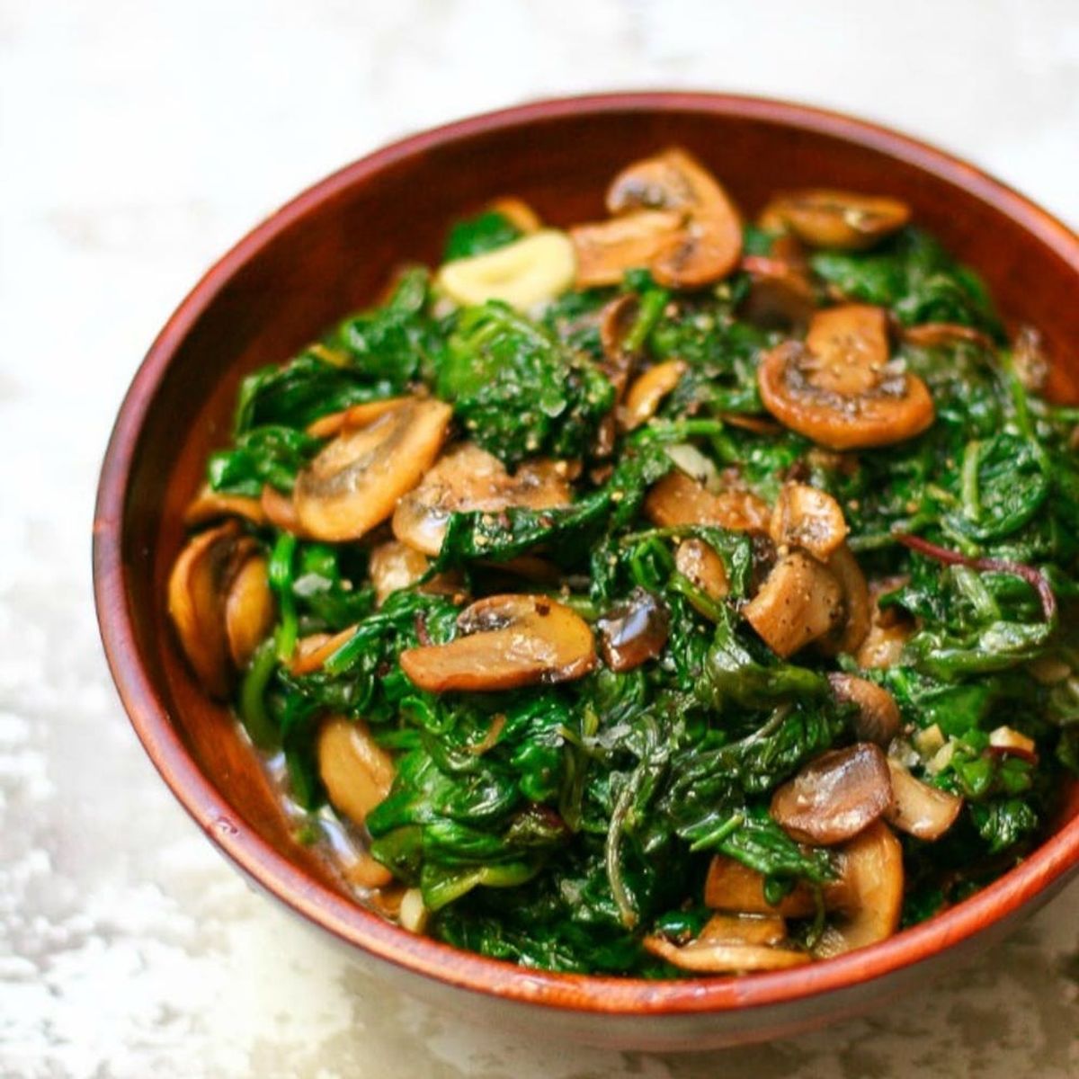Browned mushrooms lend an earthy, umami punch to a combination of super-healthy greens (choose your favorite store-bought blend, or mix your own). A squeeze of lemon juice keeps the flavor bright. (via Erica Julson)