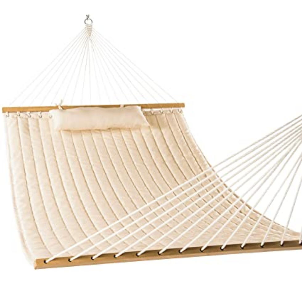 If you have the room, why wouldn't you install a hammock? Opt for a classic, functional one that will allow you to get comfy and make it your own with throw pillows to suit your style.
