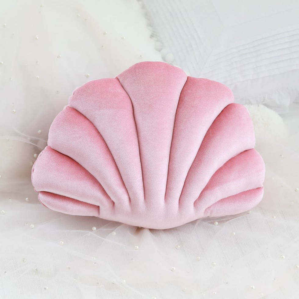 Shell pillows and accessories are a micro interior design trend we can't get enough of right now. Unless you're decorating a beach house, mix one in with a few other shapes so things don't get too kitschy.
