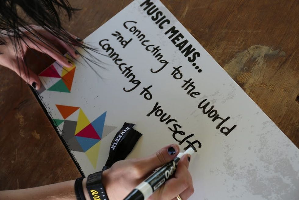 3. Toyota’s Cosmic Paradise: Come for a “Galaxy ink body paint tattoo” (we’re just as intrigued as you are!), and stay for the watercolor silkscreen tote bags Toyota will be giving out in its Cosmic paradise tent. If you’re lucky, you just might spot a special note from one of the fest’s many artists, as well — The Zombies, Capital Cities, Kevin Garrett, and Dillon Francis have all added their contributions to the tent’s #ToyotaGiving mosaic wall in the past to answer the question, “What does music mean to you?” (Photo via Toyota)