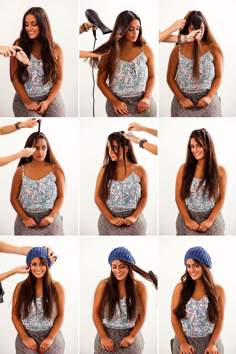 Next up, how crazy is this transformation? If you’re bored of hair or just feel like mixing things up, you can fake a haircut with a few key pins and a slouchy beanie.