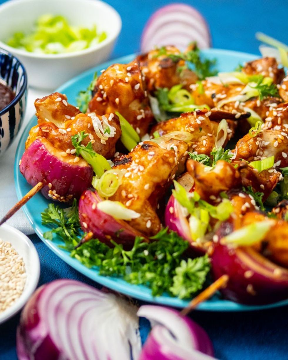 These vegan BBQ skewer wings are sooo good and only 382 calories!