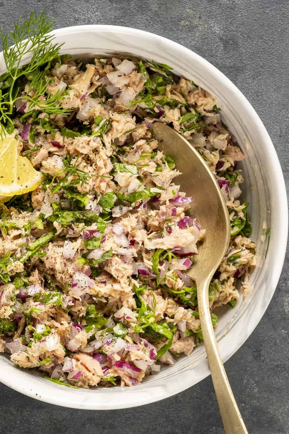 This dairy-free tuna salad recipe is perfect for a low-calorie and light lunch at just 171 calories. (via Give Recipe)