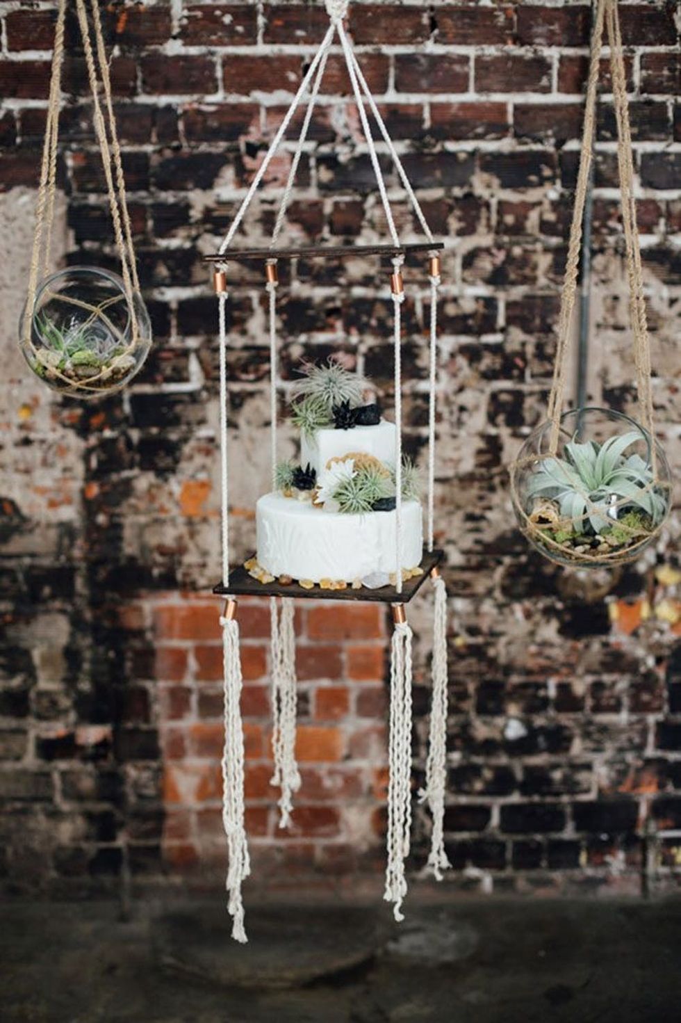 3. Alternative Cake Table: Harness the world of hanging greenery for a cake that is total #plantlady perfection. (via Hugo Coelho / Junebug Weddings)