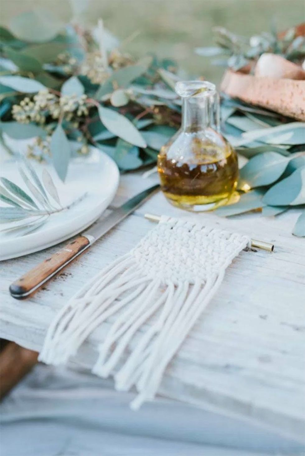 5. Table Runners: Macrame tablecloths can be tricky because they create an uneven surface. Use a woven runner instead for a fantastic tablescape detail. (via Laura Kelly Photography / Ruffled Blog)