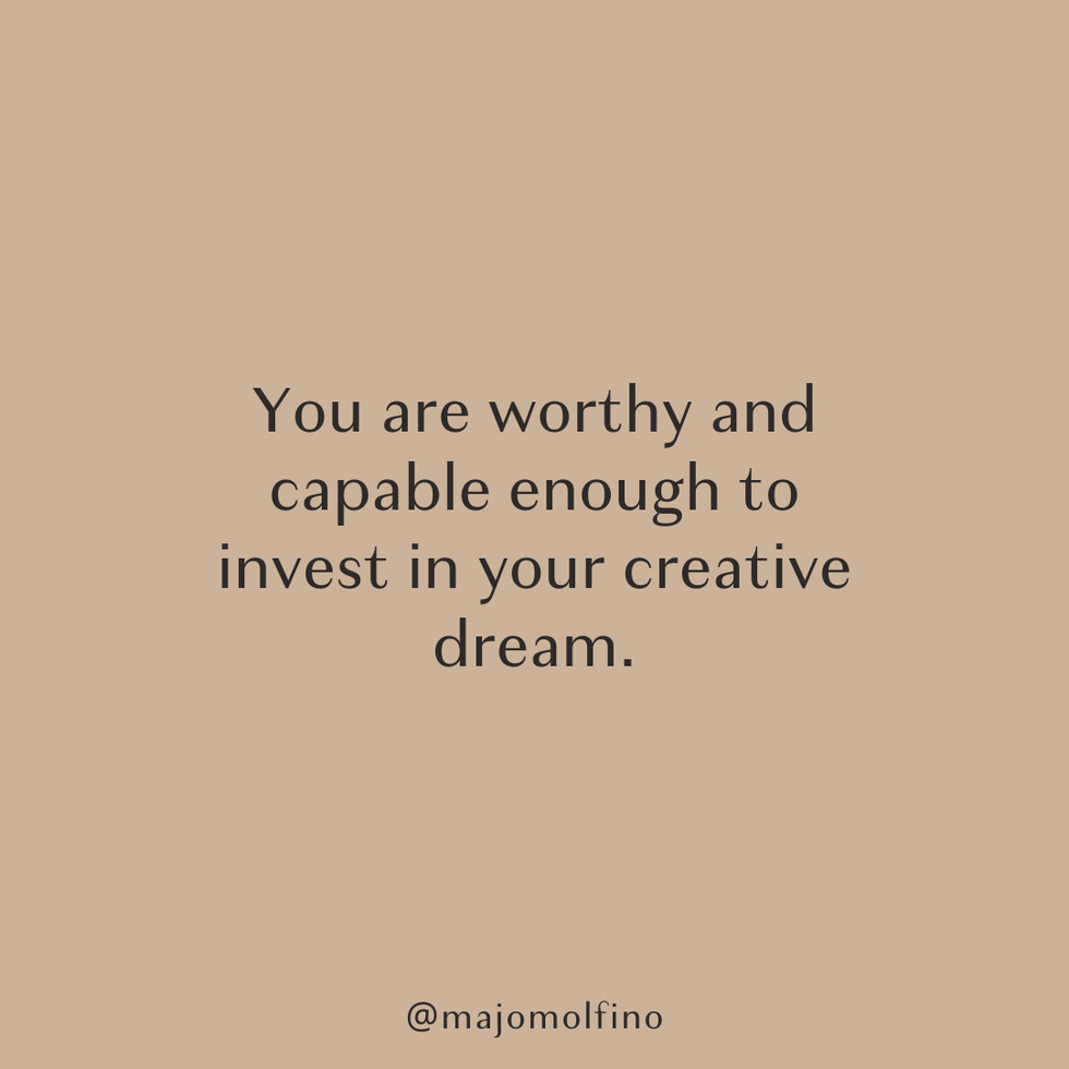 Majo: I believe every woman has a creative purpose she must design and express. But it's scary! Too many of us dangerously delay our creative dreams because of our resistance (excuses, negative self-beliefs, perfectionism, self-doubt, fears, etc.). IGNITE is an 8-week program that invites you to build creative confidence and define, test, and share their creative idea with the world, without quitting your day job or making a big career move. It's for a woman who is ready to play bigger and step into her creative potential. If you're interested in learning more, check out IGNITE here.